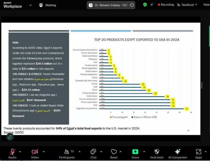 ونظم المجلس التصديري للصناعات الغذائية ندوة إلكترونية هامة عبر تطبيق زووم تحت عنوان "فرص جديدة في السوق الأمريكي: كيف تستفيد من التغيرات الجمركية الأخيرة؟".
