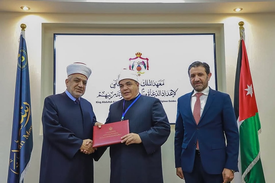 وفي ختام هذه الفعاليات المتميزة، تفضل الدكتور محمد الخلايلة، وزير الأوقاف والشئون والمقدسات الإسلامية الأردني، بتسليم درع "رسالة عمان" تكريمًا للدكتور أسامة الأزهري، وزير الأوقاف المصري، وذلك تقديرًا لجهوده العلمية والدعوية المتميزة في خدمة قضايا الفكر الإسلامي ونشر قيم الوسطية والاعتدال، وقد تسلم الدرع نيابة عنه الشيخ أحمد فتحي حجازي، مدير عام الإدارة العامة للفتوى وبحوث الدعوة بديوان عام وزارة الأوقاف، وسط إشادة واسعة من جميع الحضور بالدور الريادي لمصر وأزهرها الشريف ووزارة أوقافها الرائدة.