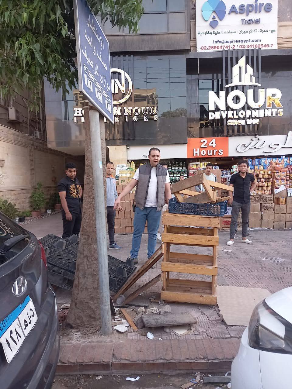 كما تم رفع إشغالات سوبر ماركت أولاد علوش بشارع عمر بن الخطاب استحابة لشكاوى المواطنين، بالإضافة إلى إيقاف أعمال مخالفة بالعقار رقم 9 بشارع ابراهيم بمنطقة الكوربة وإيقاف تشطيبات مخالفة بالعقار رقم 63 خليفة المأمون.