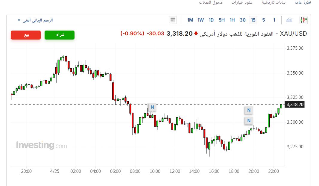 مؤشر الذهب عالميا، لازال مؤشر الذهب عالميا يسجل تراجعات سعرية، عقب تراجع حدة التصريحات بين أمريكا والصين، وذلك بسبب تأكيدات البيت الأبيض أن هناك مفاوضات مع الجانب الصينى بشأن مصير التعريفات الجمركية وهو ما أحدث هدوءا نسبيا، نتج عنه تحسن مؤقت وفترة تصحيح قوية تحدث الأن فى أسعار الذهب العالمية بعد أن تخطى منطقة الــ 3450 جنيه، ومن ثم عاودت الأسعار التصحيح والرجوع عند المستوى 3318.20 دولارا للاونصة.