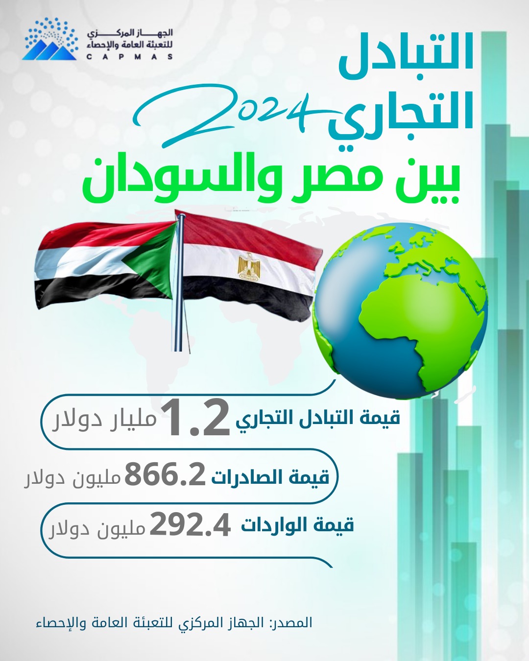 الإحصاء: 1.2 مليار دولار قيمة التبادل التجاري بين مصر والسودان خلال 2024
