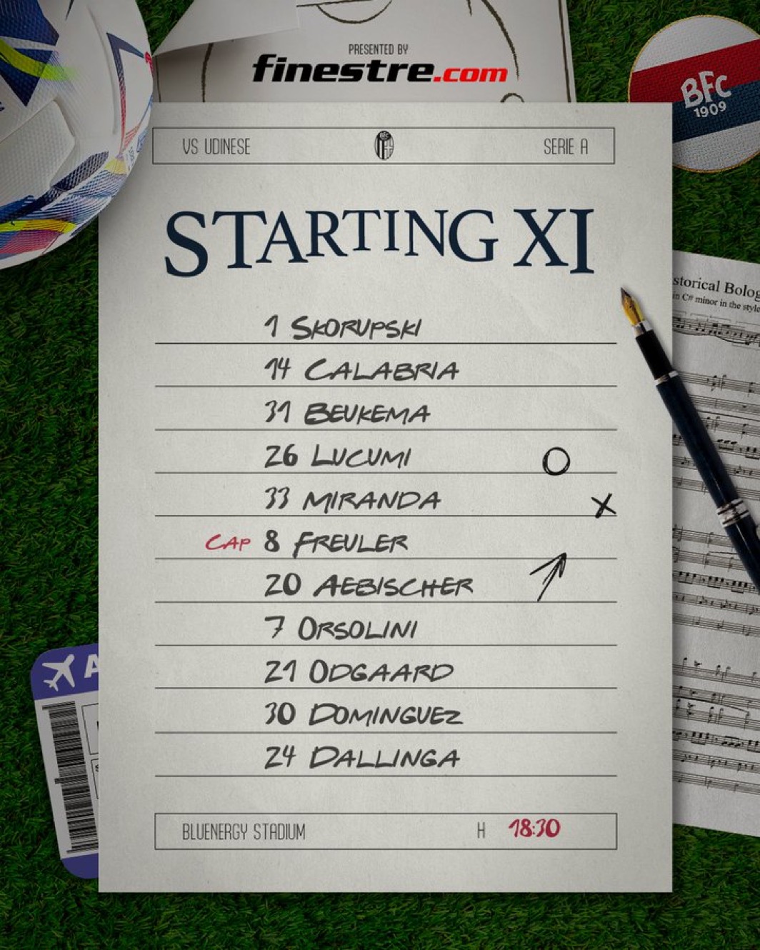 وبتلك النتيجة يحتل فريق أودينيزي في المركز الـ12 برصيد 41 نقطة، بينما يتواجد فريق بولونيا في المركز الخامس برصيد 61 نقطة.