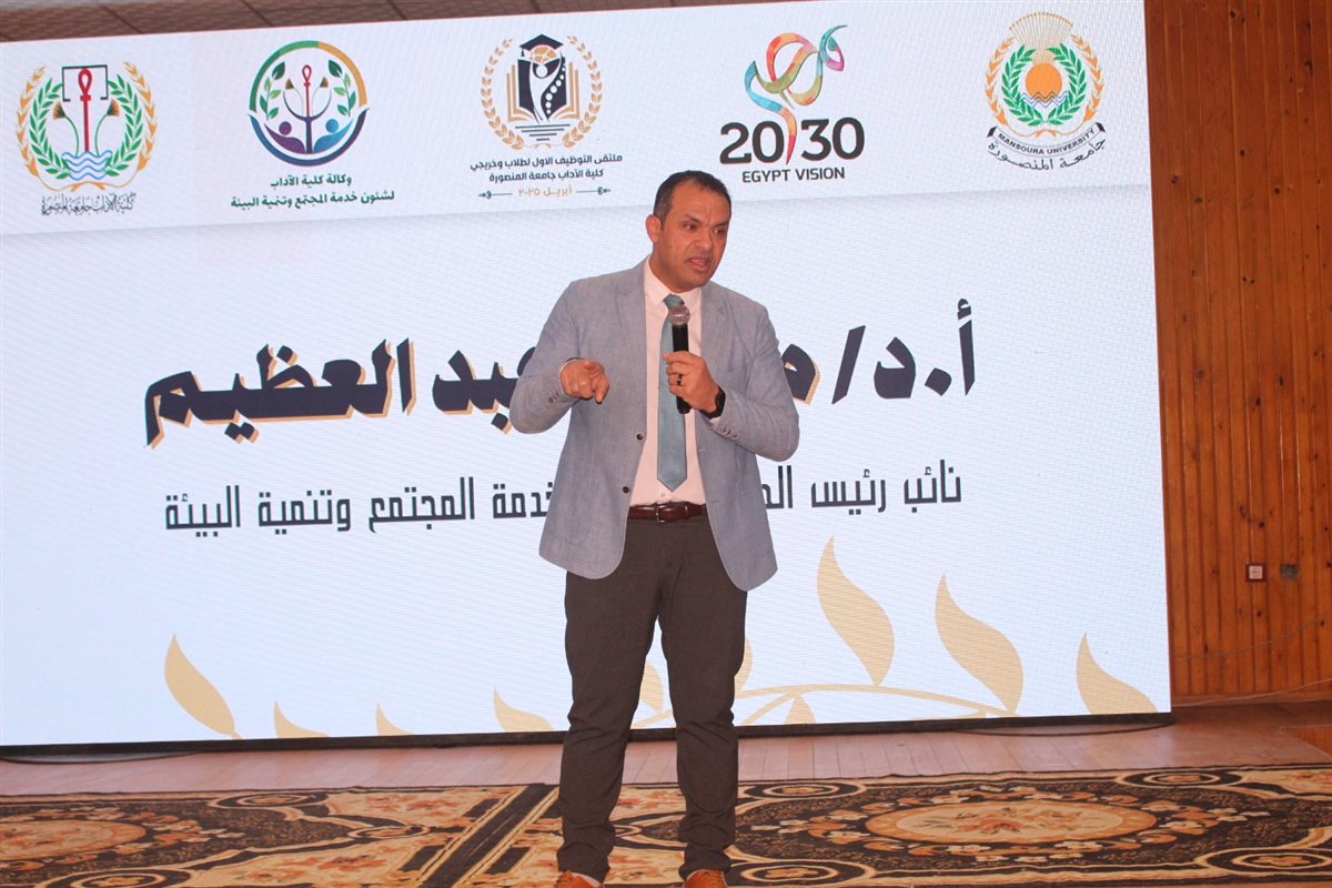 افتتح الدكتور محمد عبد العظيم، نائب رئيس جامعة المنصورة لشئون خدمة المجتمع وتنمية البيئة، اليوم الثلاثاء، ملتقى التوظيف الأول لطلاب كلية الآداب وخريجيها تحت شعار «سوق عمل مستدام».