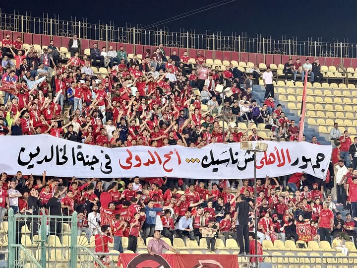 وحمل بانر جماهير الأهلي عبارة" جمهور الأهلي مش ناسيك … أمح الدولي في جنة الخالدين".