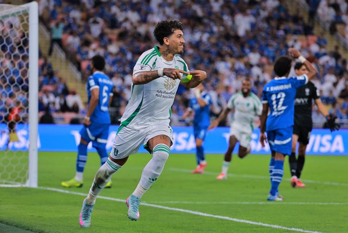 وأحرز روبرتو فيرمينو لاعب أهلي جدة الهدف الأول في مرمى الهلال السعودي بالدقيقة 9.