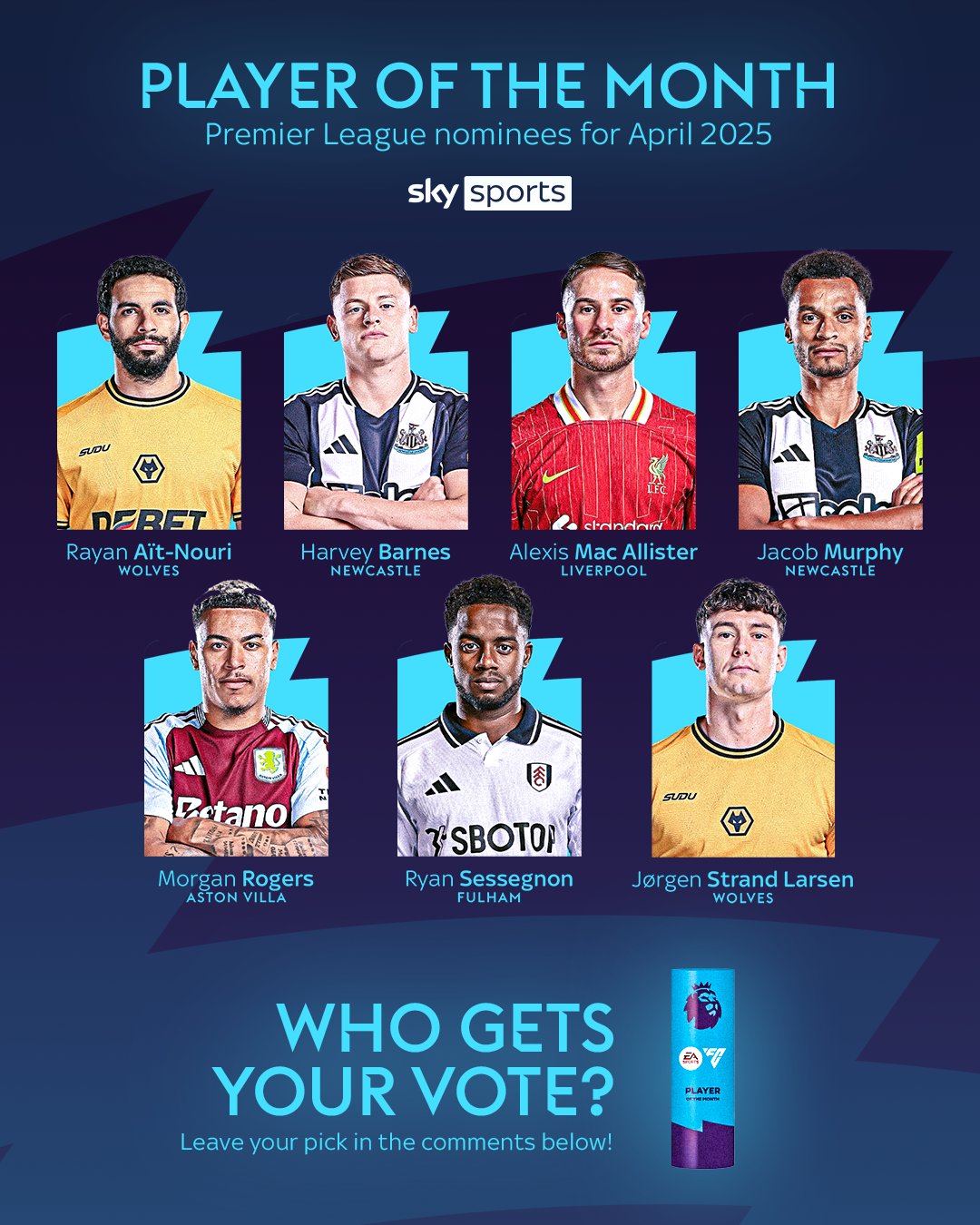 كما كشفت رابطة الدوري الإنجليزي عن المرشحين لجائزة لاعب الشهر في الدوري الإنجليزي الممتاز لشهر أبريل 2025.