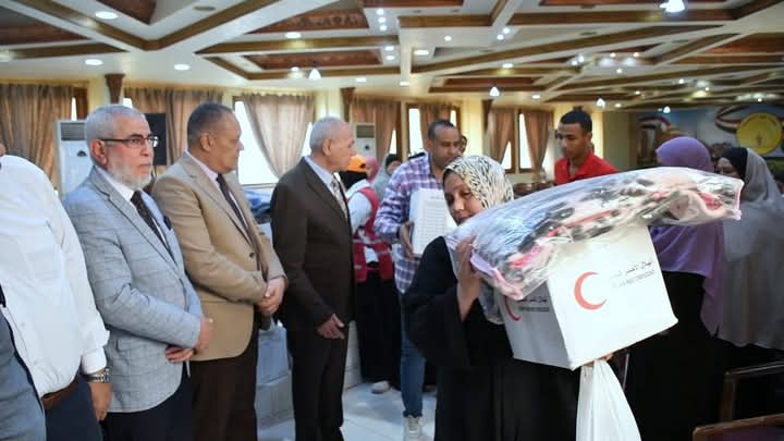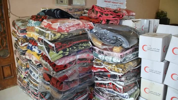 وقام الهلال الأحمر المصري بتوزيع مئات البطاطين والكراتين الغذائية، على الأسر الأكثر احتياجًا، بقرية البسيونية في محافظة الفيوم.