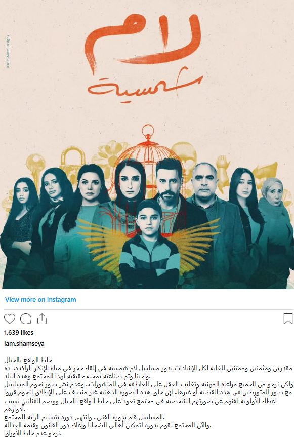 وقال صنَّاع "لام شمسية" عبر الصفحة الرسمية للعمل على "إنستجرام": مقدرين وممتنين للغاية لكل الإشادات بدور المسلسل في تحريك المياه الراكدة للإنكار المجتمعي.. هذا واجب إنساني وفني، وصُنع بمحبة حقيقية لهذا الوطن.