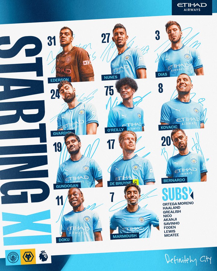 مرموش يقود هجوم مانشستر سيتي في مواجهة وولفرهامبتون بالدوري الإنجليزي