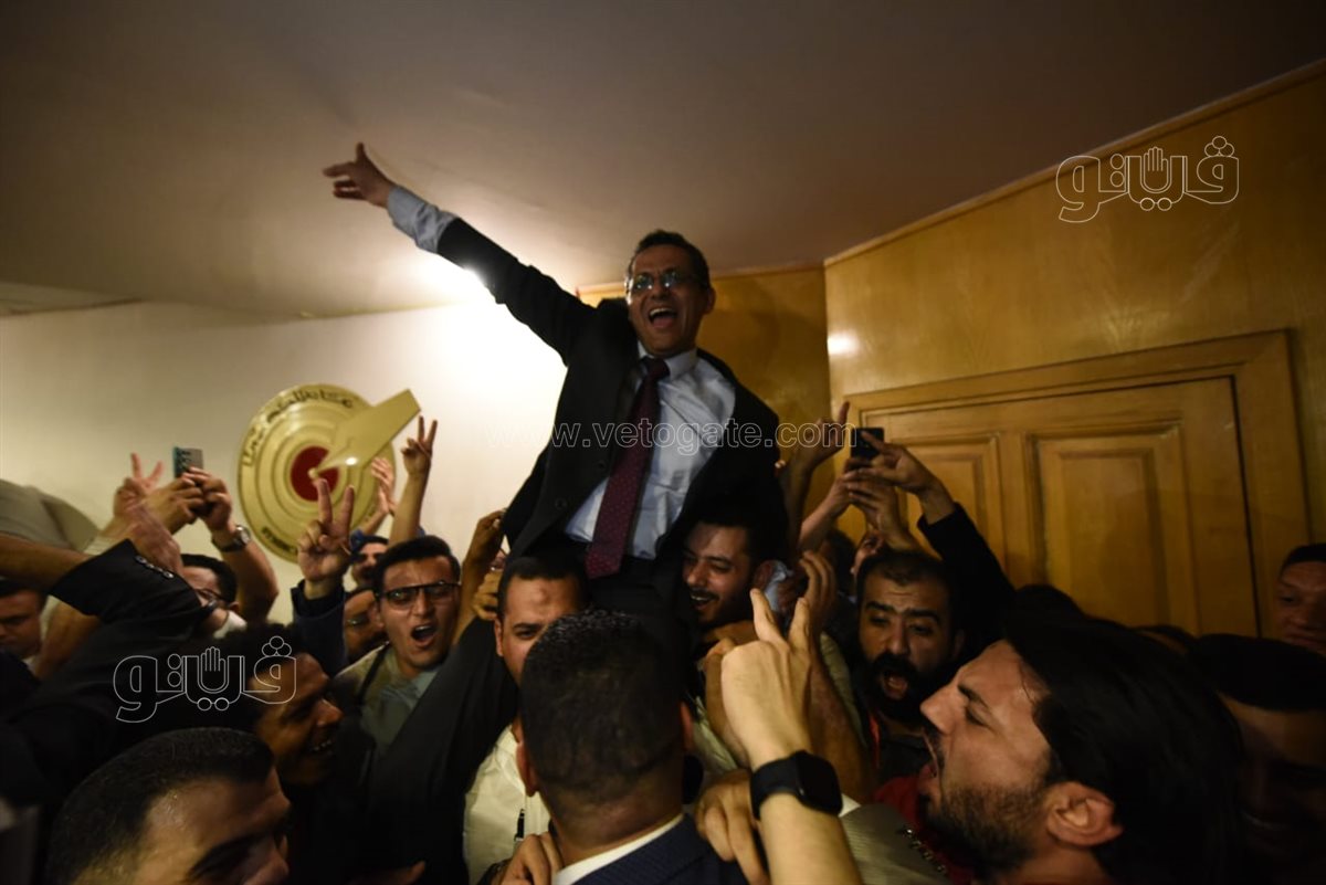 احتفالات بفوز خالد البلشي بمنصب نقيب الصحفيين (فيديو وصور)