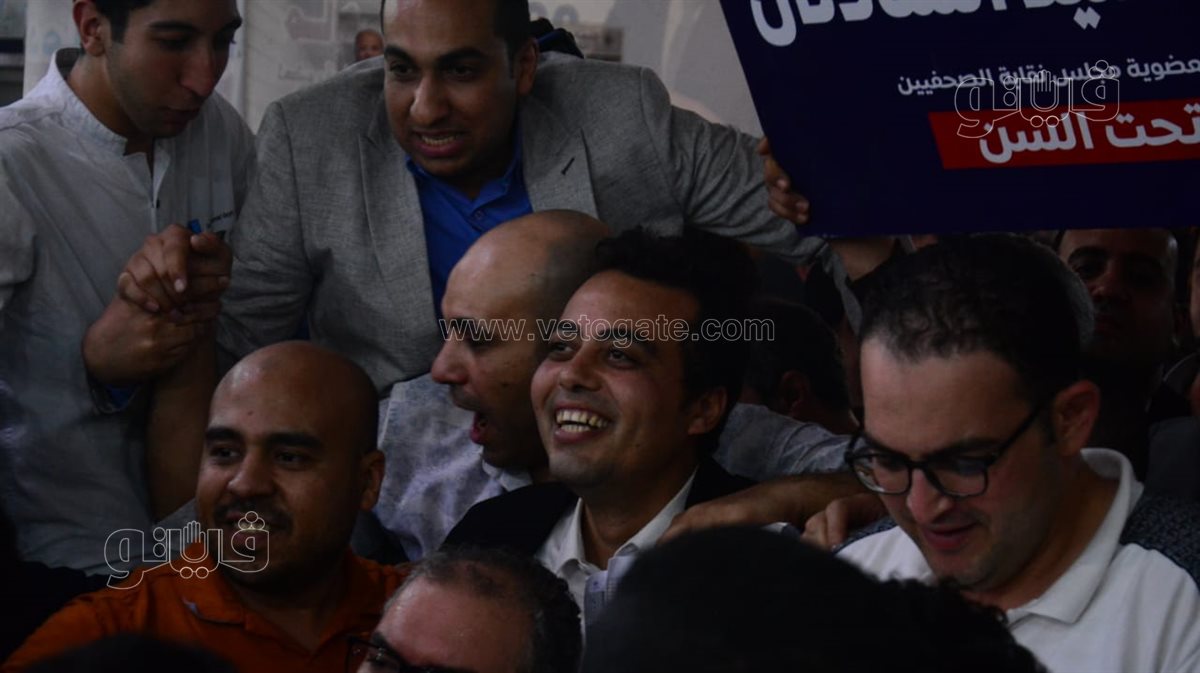 احتفل أنصار المرشحين أيمن عبد المجيد ومحمد السيد بعد ظهور المؤشرات الأولية بفوزهم بانتخابات مجلس نقابة الصحفيين بعد انتهاء أغلب اللجان من عمليات الفرز.