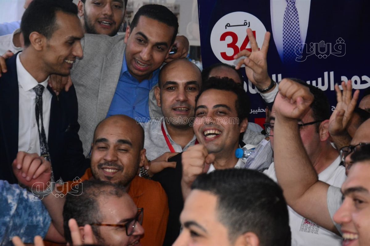 احتفال أنصار أيمن عبد المجيد ومحمد السيد بعد ظهور مؤشرات أولية بتقدمهم بعضوية الصحفيين (فيديو وصور)