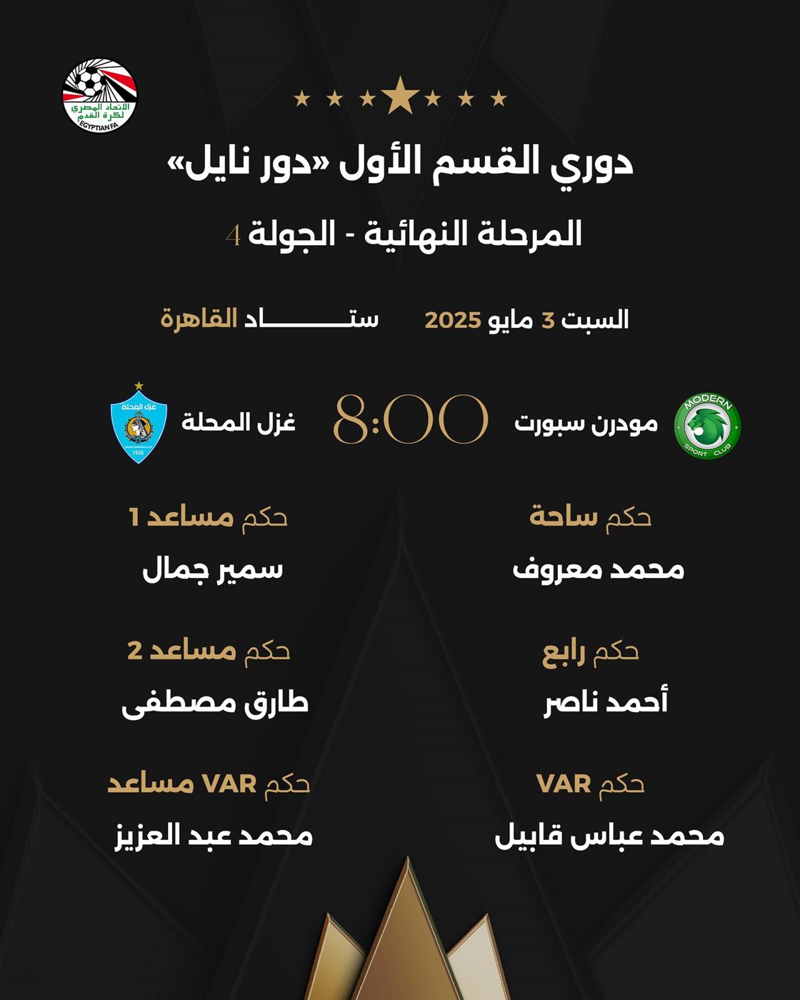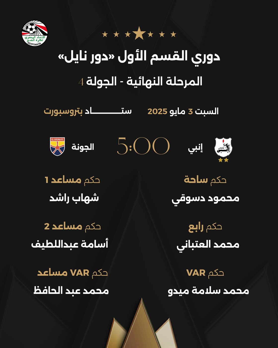 الدوري المصري، حكام مباراتي السبت في الجولة الرابعة من المرحلة النهائية