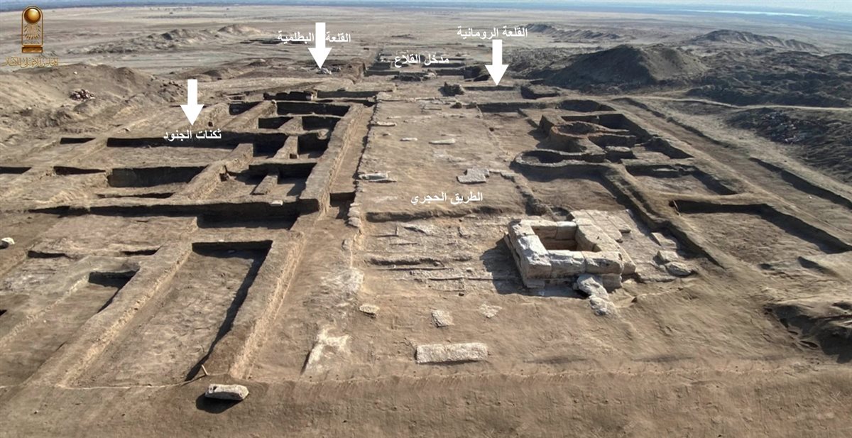 ومن جانبه أشار محمد عبد البديع رئيس قطاع الآثار المصرية، إلى أن البعثة عثرت كذلك على طريق بعرض 11 مترا وطول يتجاوز 100 متر، مرصوف ببلاطات من الحجر الجيري، يمتد من خارج البوابة الشرقية للقلعة الرومانية ويصل إلى قلب الموقع، لافتًا إلى أن هذا الطريق مبني فوق طريق أقدم يعود للعصر البطلمي مشيد من بلاطات من الحجر الجيري.