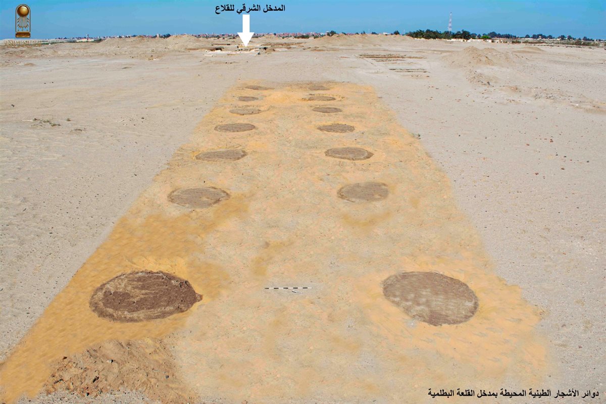كما تم الكشف عن أكثر من 500 دائرة طينية على جانبي الطريق الحجري، يُرجح أنها كانت تُزرع فيها الأشجار التي زينت مدخل القلعة خلال العصر البطلمي، فضلا عن الكشف عن مساكن الجنود من العصر الروماني، مما يعطي صورة واضحة عن الحياة اليومية للفرسان المرابطين في القلعة الرومانية خلال عصر الإمبراطور دقلديانوس والإمبراطور مكسيميان، بالإضافة إلى الكشف عن 4 أفران كبيرة استخدمت لإنتاج الجير الحي، ما يشير إلى تحول الموقع إلى مركز صناعي في نهاية العصر الروماني مما أدى لتدمير جميع المنشآت الحجرية بالموقع.