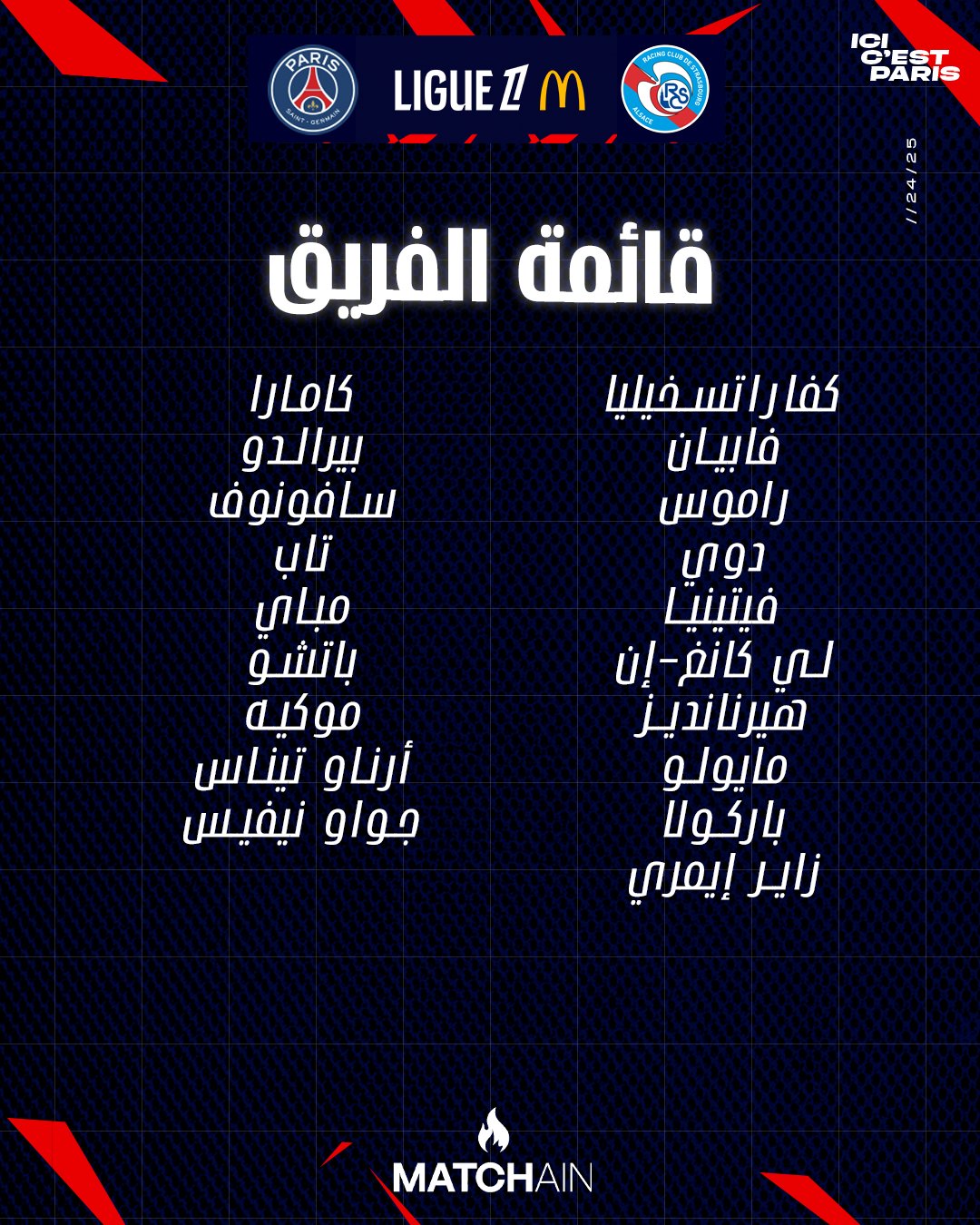 أعلن المدرب الإسباني لويس إنريكي المدير الفني لفريق باريس سان جيرمان، قائمة فريقه لمواجهة ستراسبورج، التي ستقام على ملعب “دو لامينو” في إطار مجريات الجولة الثانية والثلاثين من الدوري الفرنسي.