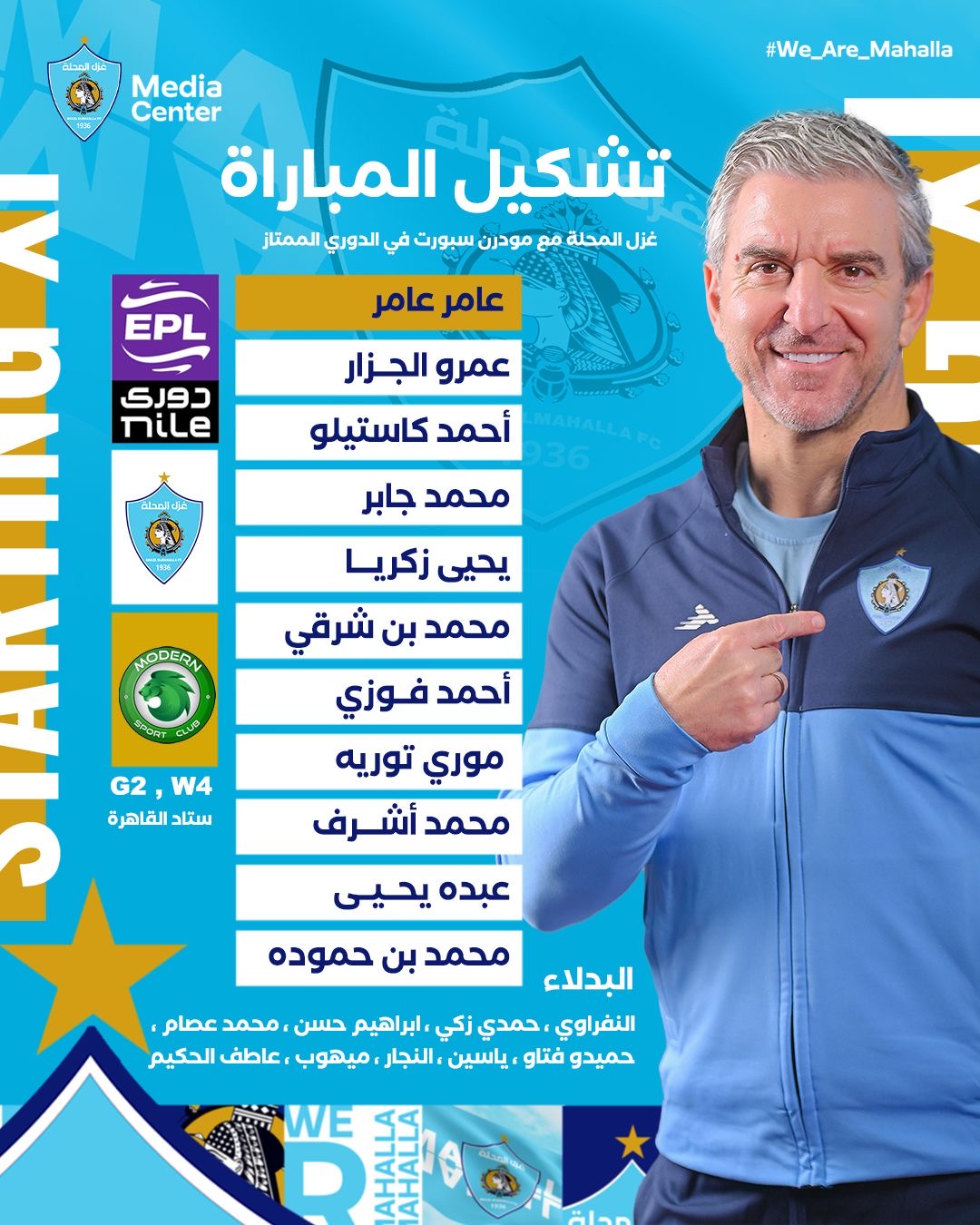 وأعلن بابا فاسيليو عن تشكيل غزل المحلة التي جاء كالتالي: