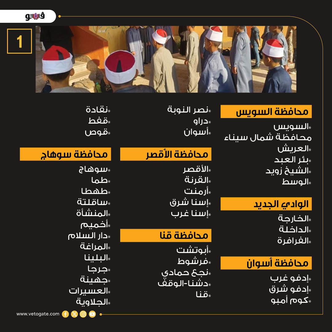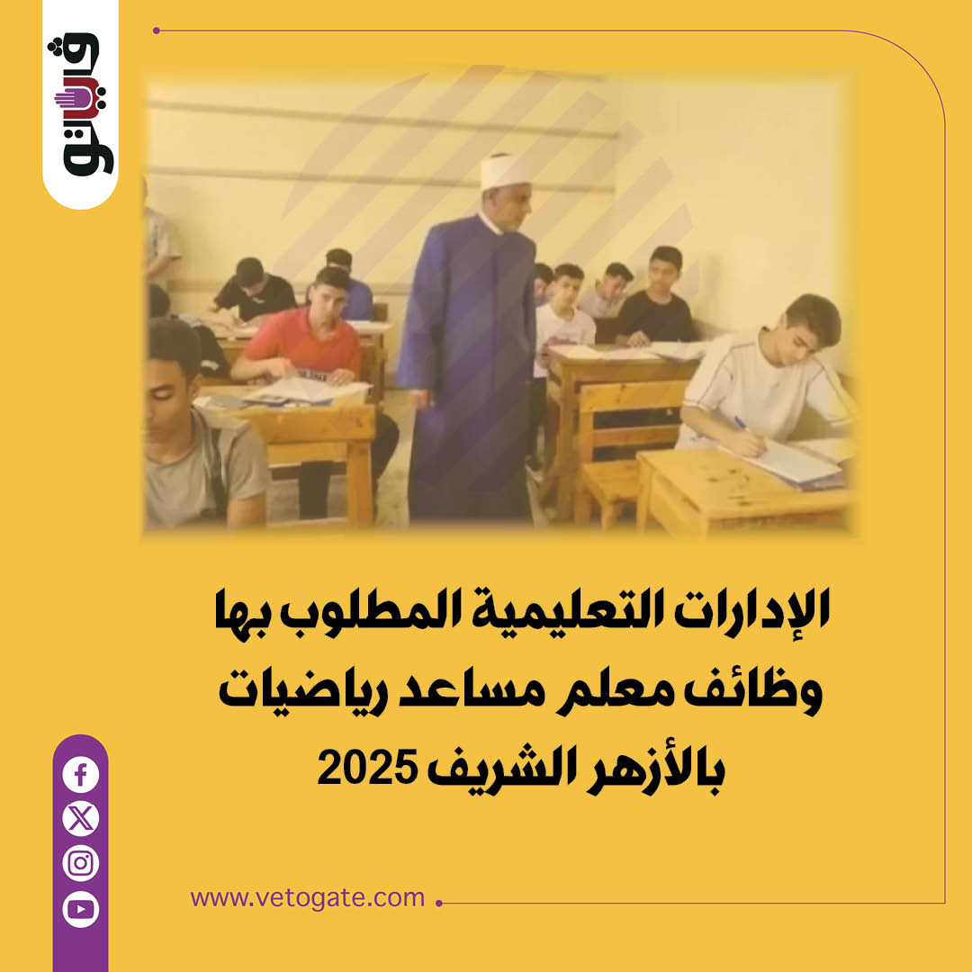 الإدارات التعليمية المطلوب بها وظائف معلم مساعد رياضيات بالأزهر الشريف 2025 (إنفوجراف)