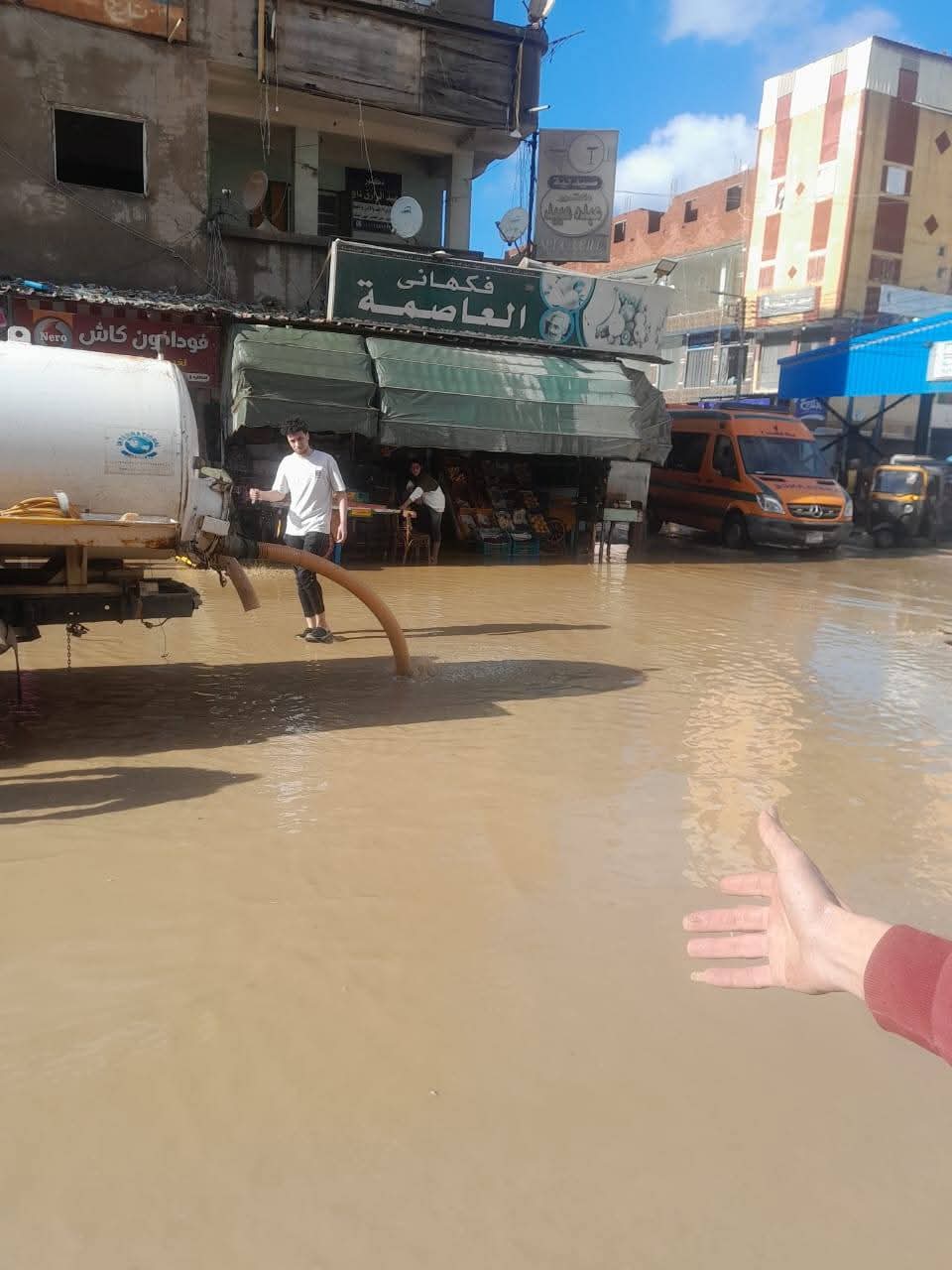 من جانبها، دفعت الشركة القابضة لمياه الشرب والصرف الصحي بدمياط بعدد من سيارات شفط المياه، بينها سيارة سيول، للعمل على رفع التراكمات وتسهيل الحركة المرورية، خاصة في الشوارع الرئيسية.