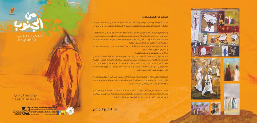 أعلن قطاع الفنون التشكيلية برئاسة الدكتور وليد قانوش عن افتتاح معرض جماعي تحت عنوان "من الجنوب"، ليكون ذلك المعرض الجماعي الـ46 لفناني اللقطة الواحدة بمبادرة "ابحث عن الصعايدة" للفنانيين التشكيليين.