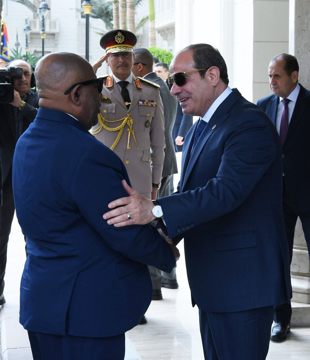 كما استقبل الرئيس عبد الفتاح السيسي، اليوم بقصر الاتحادية، عثمان غزالي، رئيس جمهورية القُمر المتحدة، حيث أقيمت مراسم الاستقبال الرسمية وتم عزف السلامين الوطنيين.