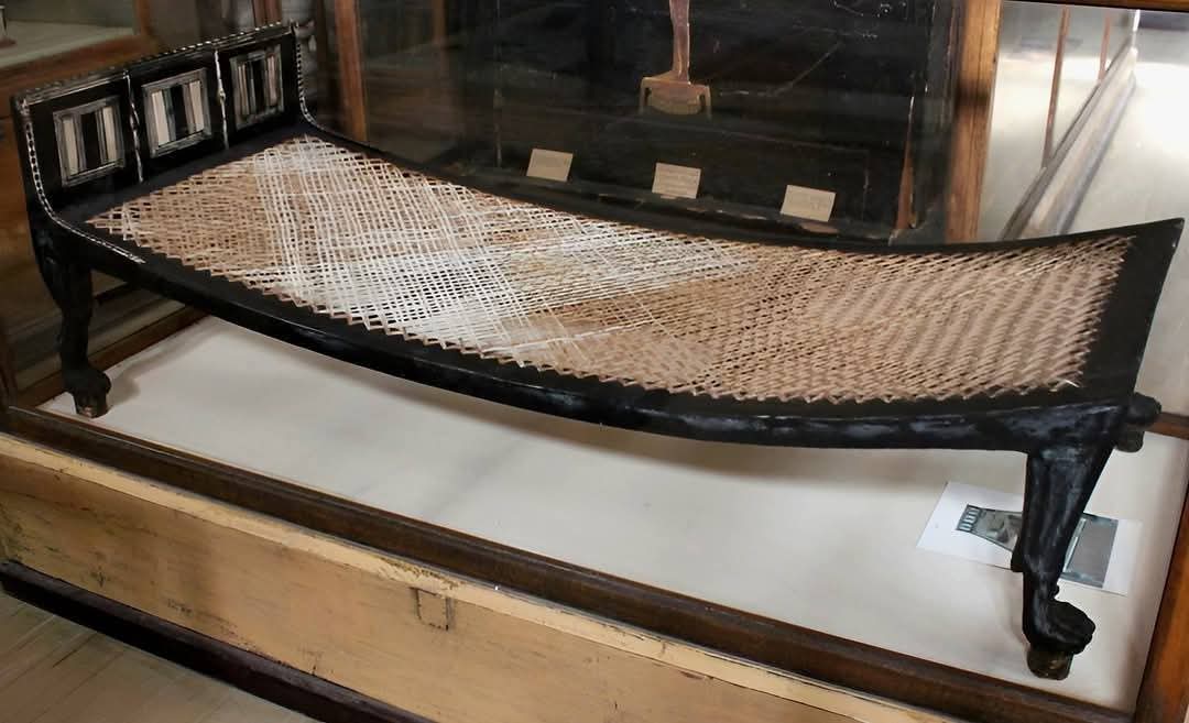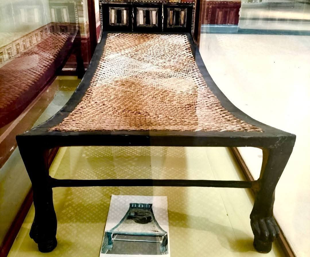 يعرض المتحف المصري بالتحرير سريرا جنائزيا من قبر يويا وثويا (KV46)، والدا الملكة تي، زوجة أمنحتب الثالث وأم أخناتن.