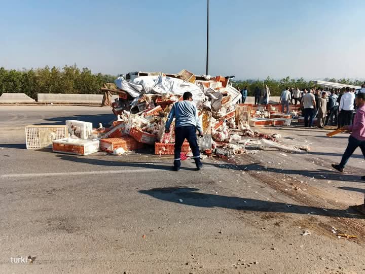 وبالانتقال والفحص تبين إصابة شخصين بإصابات متفرقة إثر انقلاب السيارة ونفوق عدد من الدواجن.