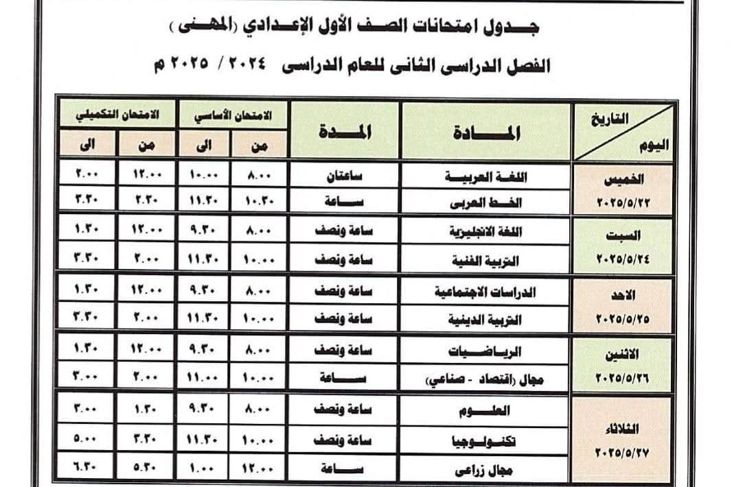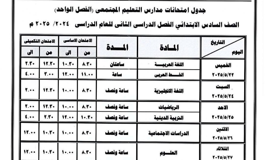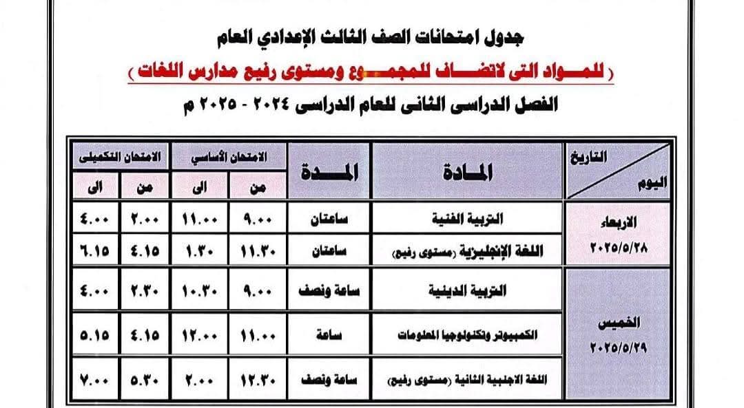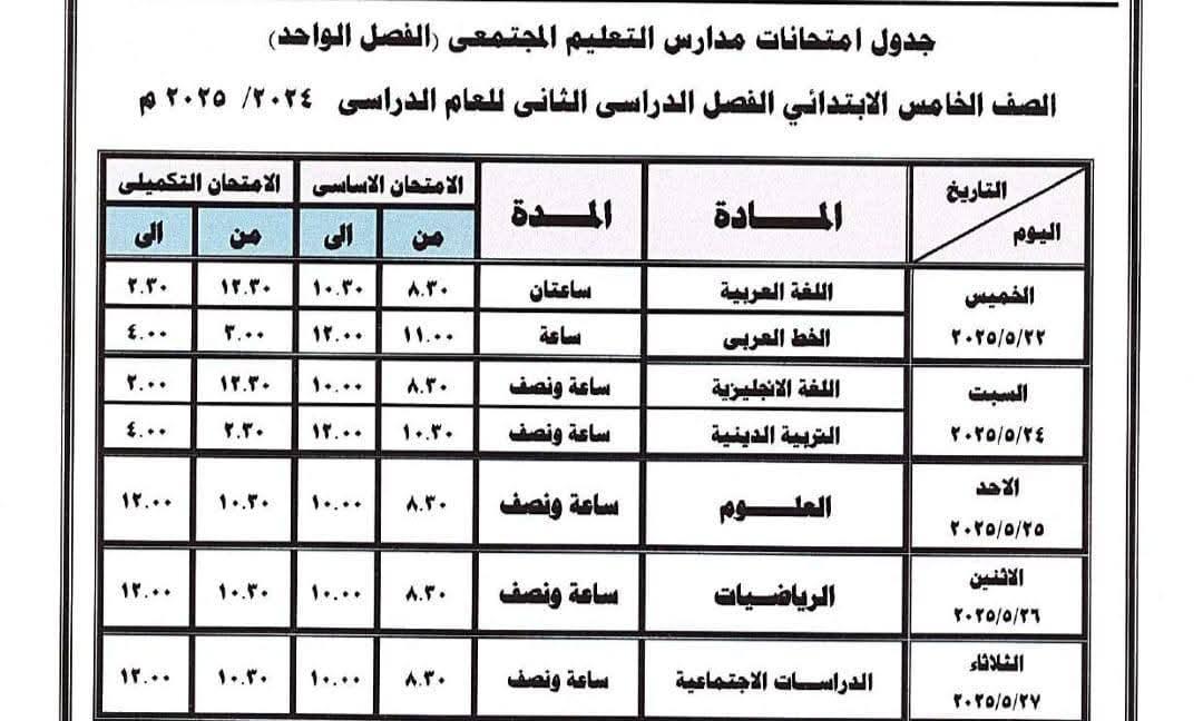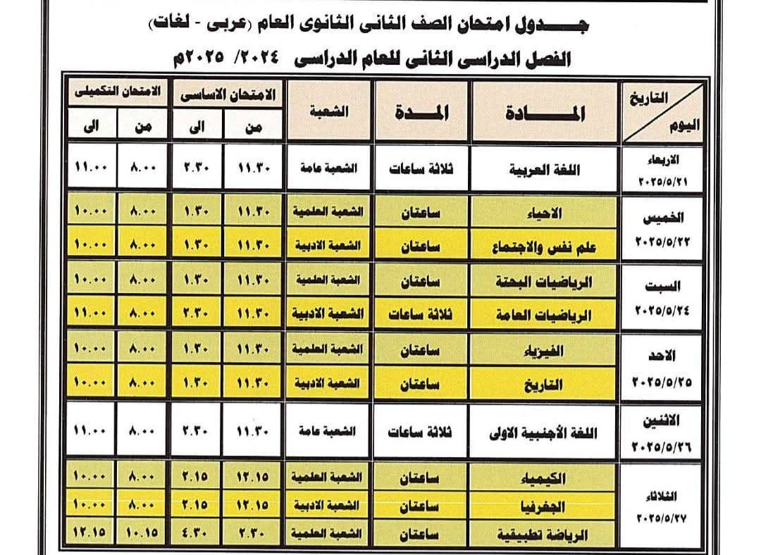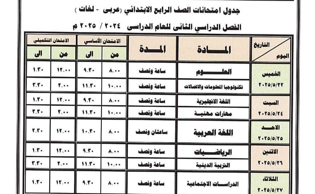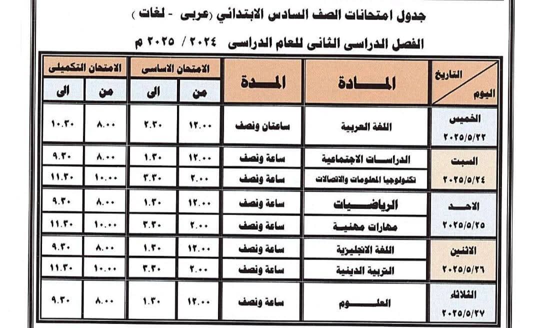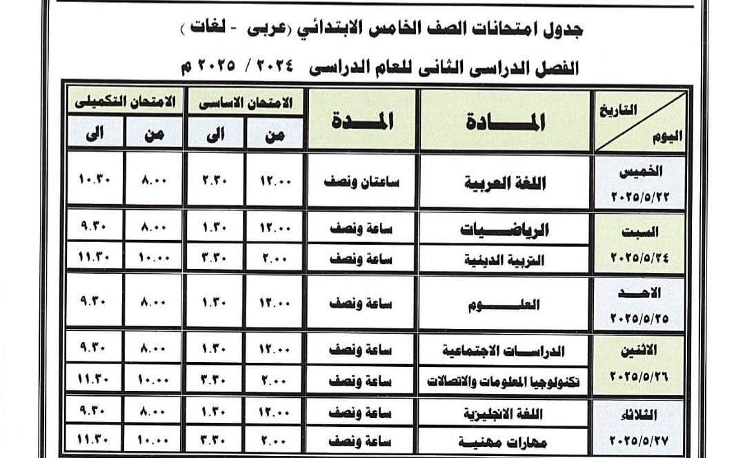 بداية الامتحانات 19 مايو والنهاية 4 يونيو