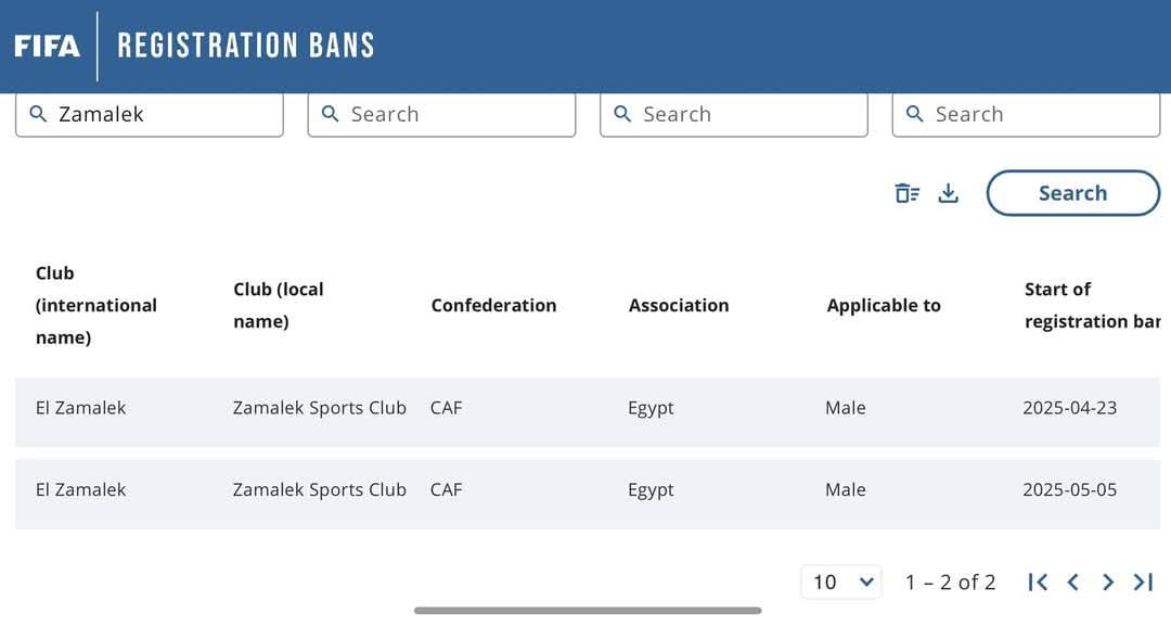 وأعلن الموقع الرسمي لفيفا، اليوم الاثنين، إيقاف جديد على نادي الزمالك لمدة 3 فترات قيد، دون تسمية القضية الجديدة.