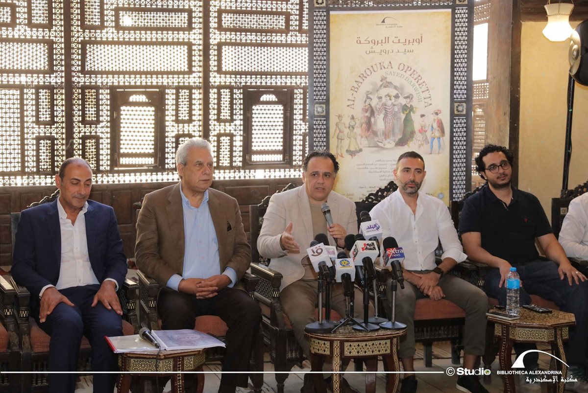 نظمت مكتبة الإسكندرية، اليوم، مؤتمرًا صحفيًا، في مقر بيت السناري الأثري بحي السيدة زينب بالقاهرة، للإعلان عن تفاصيل عرض المسرحية الغنائية "أوبريت البروكة" لفنان الشعب سيد درويش.