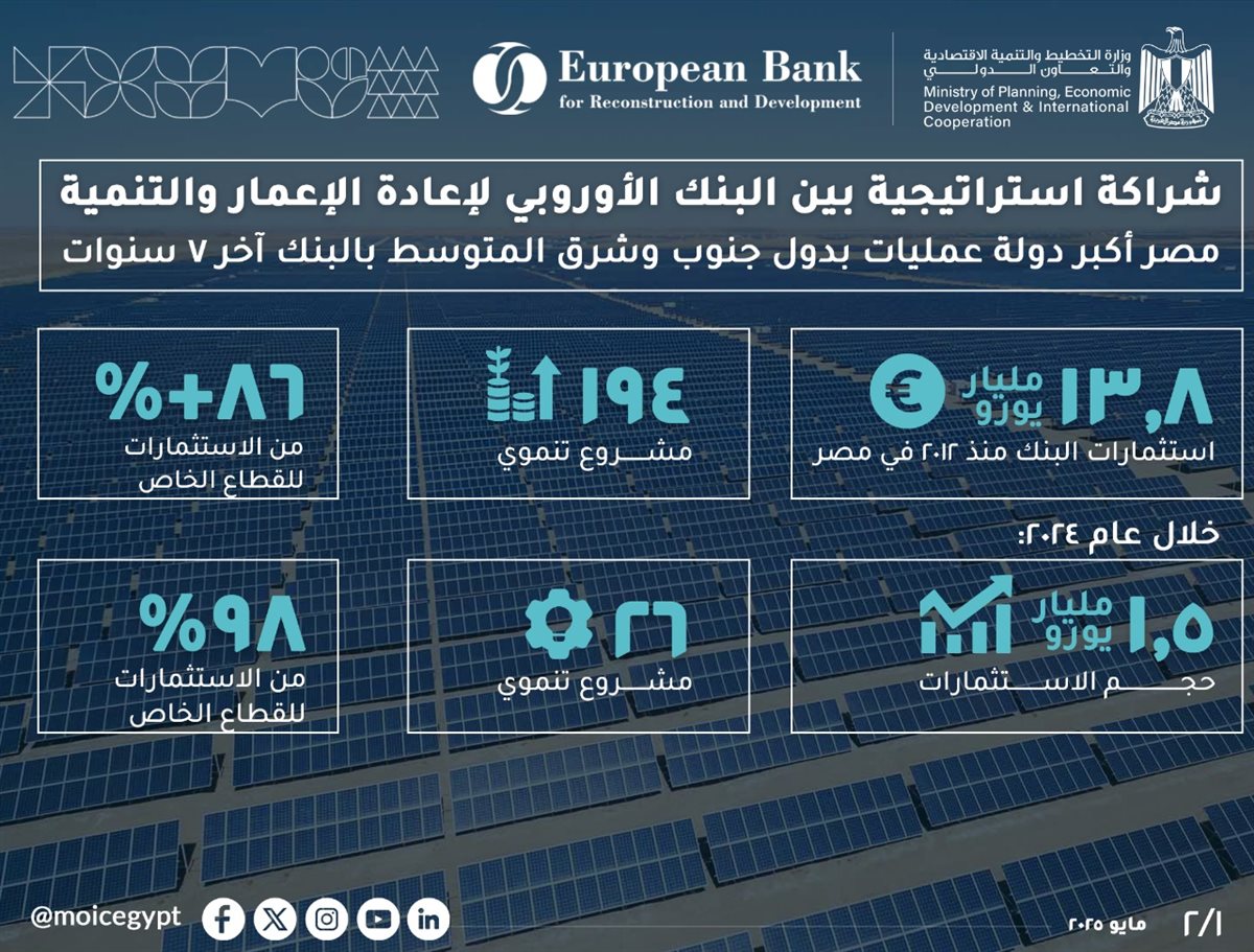 وزارة التخطيط: 13.8 مليار يورو استثمارات البنك الأوروبي في مصر (إنفوجراف)