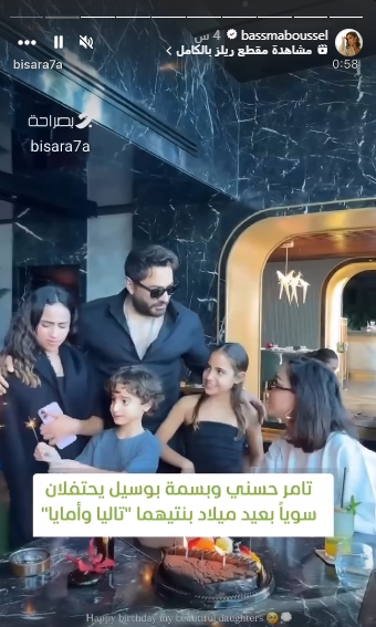 ووثق تامر حسني عبر حسابه بموقع التواصل الاجتماعي “إنستجرام”، يوثق حضوره برفقة بسمة أطفالهما الثلاثة "تاليا"، و"أماليا"، و"آدم"، وذلك في الاحتفال بعيد ميلاد ابنتيهما "تاليا" و“أماليا” حيث دارت أحاديث ونقاشات الجمهور في الساعات القليلة الماضية، مثيرًا العديد من التساؤلات بشأن ما إذا كان الثنائي الفني المنفصل زوجيًّا يحتفلان فقط بعيد ميلاد نجلتيهما أم إن صفحة الخلافات بينهما قد طويت، ويسطران فصلًا جديدًا في علاقتهما، يؤشر إلى العودة للحياة الزوجية من جديد؟