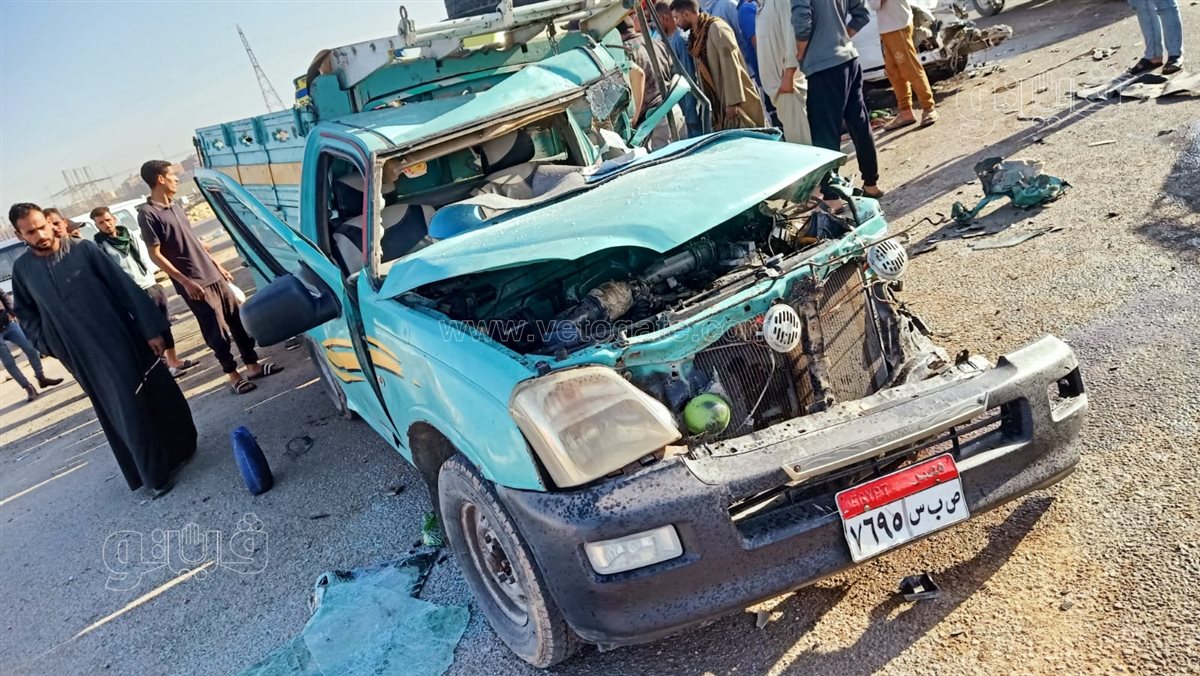 مصرع وإصابة 11 عاملا في تصادم سيارة نقل وميكروباص بمدينة بدر (صور)