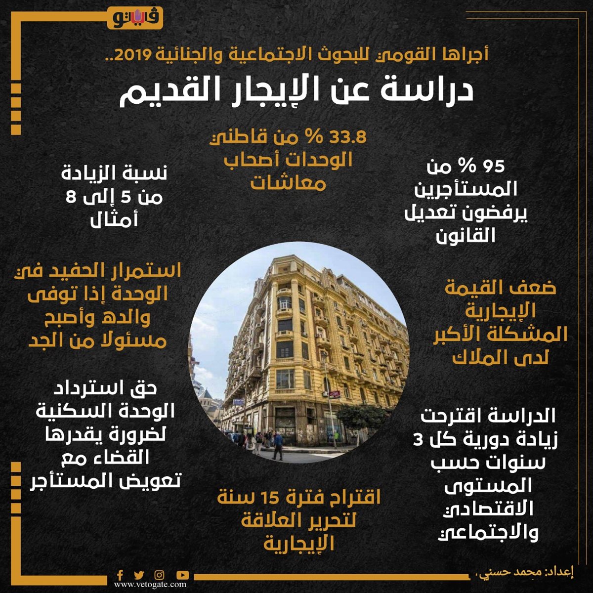 أجراها القومي للبحوث الاجتماعية والجنائية 2019.. دراسة عن الإيجار القديم (انفوجراف)