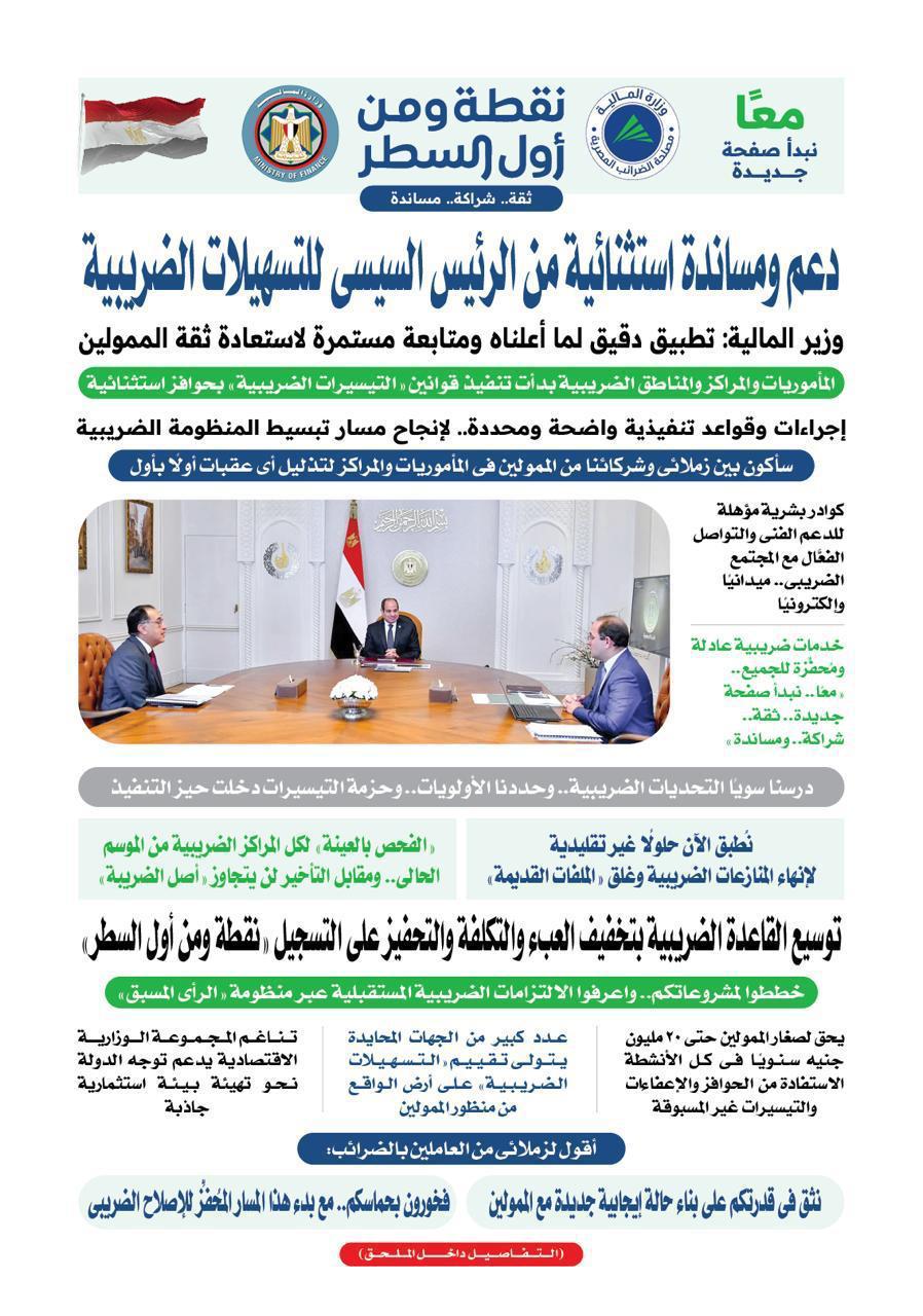 -دعم ومساندة استثنائية من الرئيس السيسي للتسهيلات الضريبية