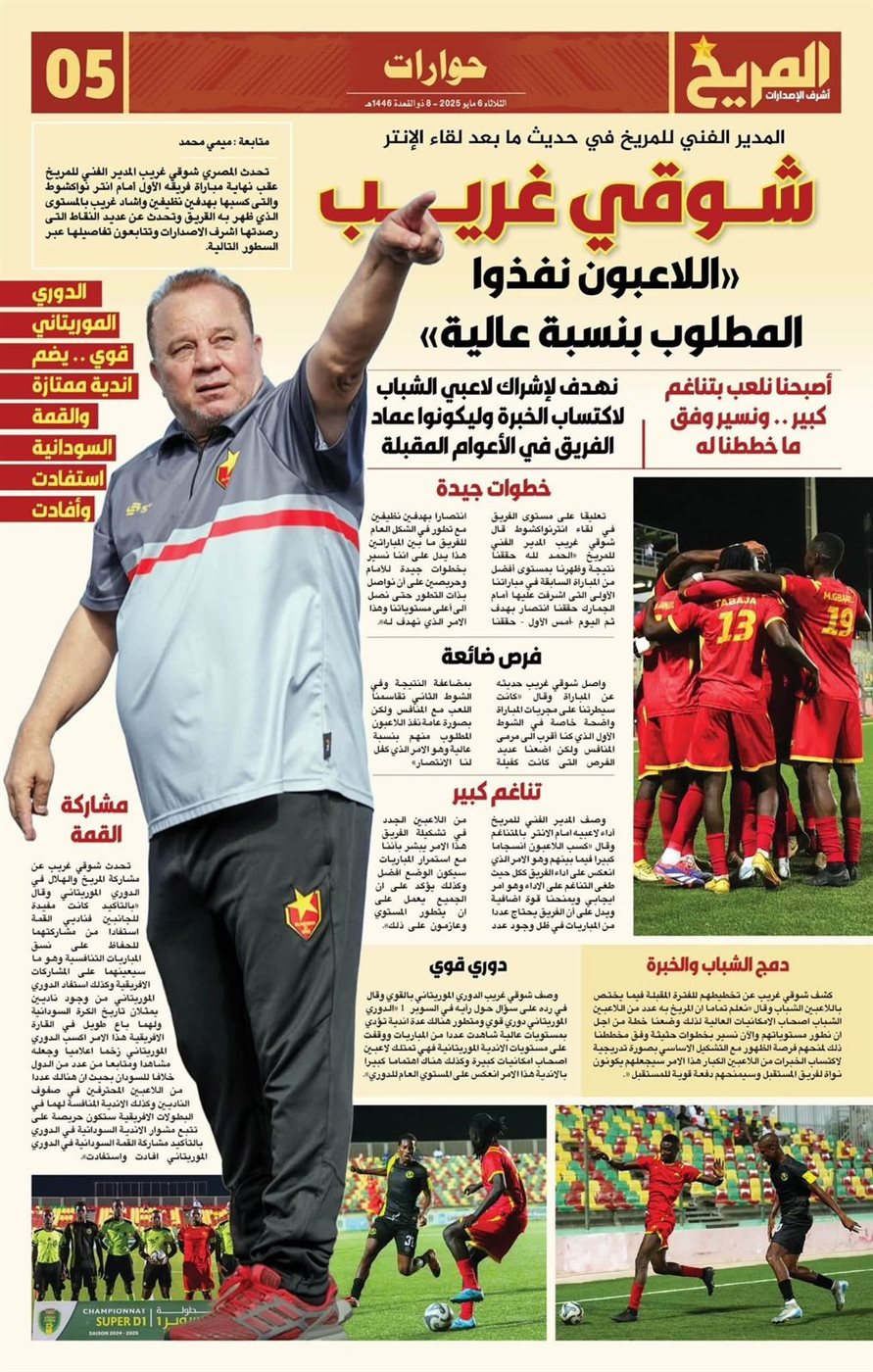 تصدر شوقي غريب المدير الفني لفريق المريخ السوداني أغلفة الصحف والمواقع السودانية بعد قيادته للفريق لتحقيق فوزه الثاني على التوالي بعد توليه مهمة القيادة الفنية للفريق.