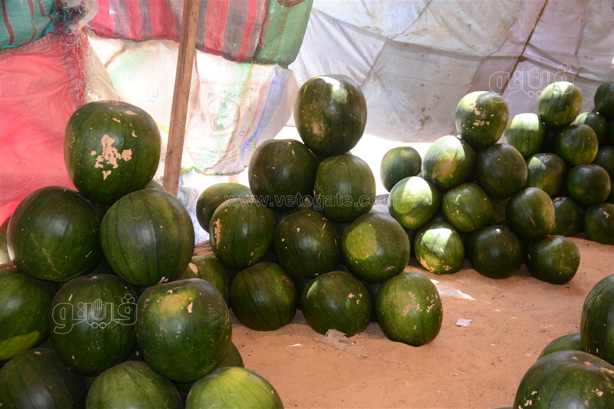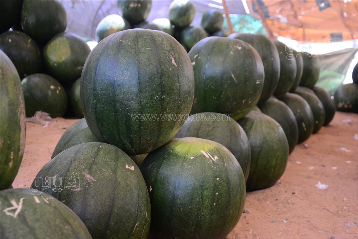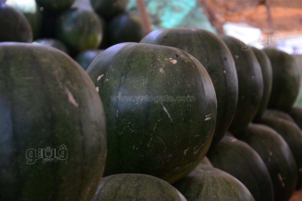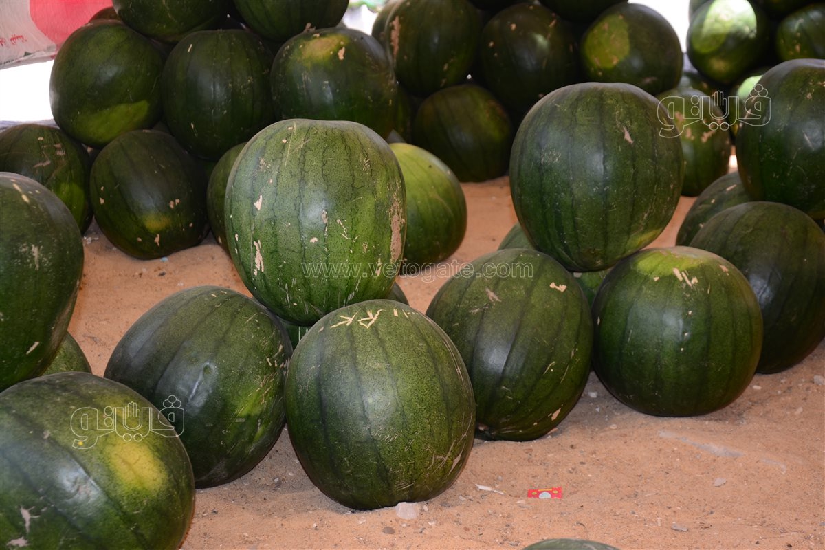 في السوق، البطيخ متوفر بأحجام متنوعة تفرّق بين سعر وسعر.