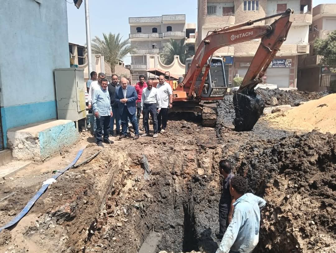 نائب محافظ الجيزة يتابع تنفيذ مشروع الصرف الصحي بقرية المنوات