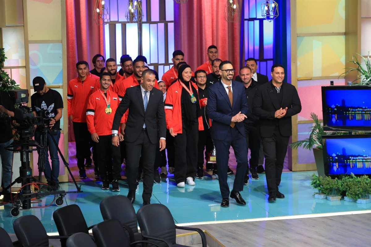 يشارك في الحلقة نجوم المنتخب الفائزين بالميداليات، إلى جانب أعضاء الجهاز الفني، حيث تسلط الحلقة الضوء على كواليس البطولة، والتحضيرات التي سبقتها، والتحديات التي واجهها اللاعبون حتى صعودهم إلى منصات التتويج القارية.