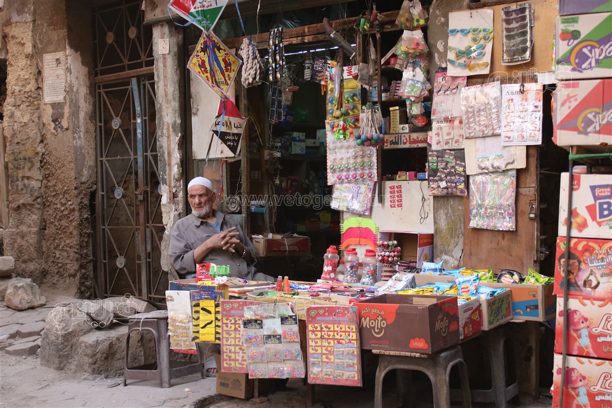 محمد السيد "أبو أشرف" فتح متجره الصغير فى الستينات وهى مدة تتجاوز النصف قرن تقريبا يبيع المستلزمات البسيطة التى تحتاجها المنطقة السكنية التى يتواجد بها، أولاده بنات متزوجات وولده أشرف مدرس بالأزهر وصل لسن المعاش فتقاعد عن العمل، ولا يزال الحاج أبو أشرف يهوى عمله ويدير متجره وحده.