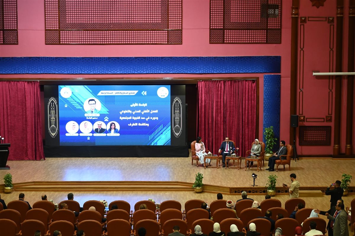 واستضافت الجلسة الأولى للمنتدى، التي دارت حول «دور العمل الأهلي والتطوعي في مكافحة التطرف وسد الفجوات المجتمعية»، المستشار محمود فوزي وزير الشئون النيابية والقانونية، السفيرة نبيلة مكرم، رئيس الأمانة الفنية للتحالف الوطني للعمل الأهلي، والدكتورة آمال إمام، المدير التنفيذي لجمعية الهلال الأحمر المصري، وأدارها الإعلامي محمد سعيد محفوظ.