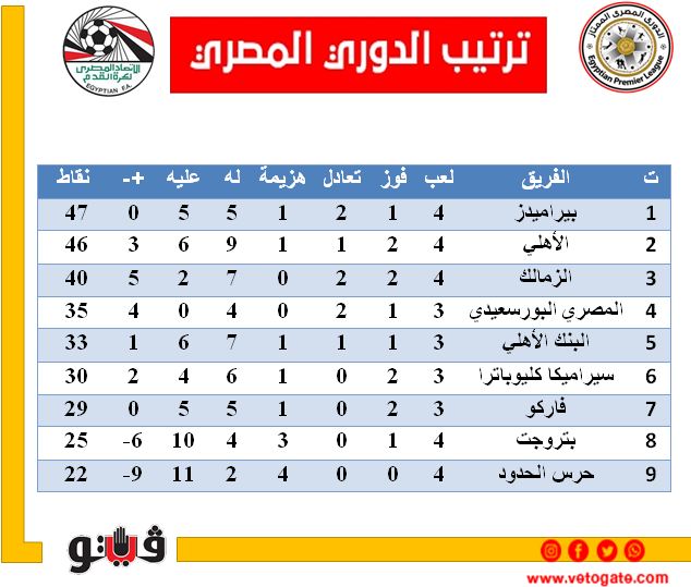 جدول ترتيب الدوري المصري مجموعة تحديد البطل