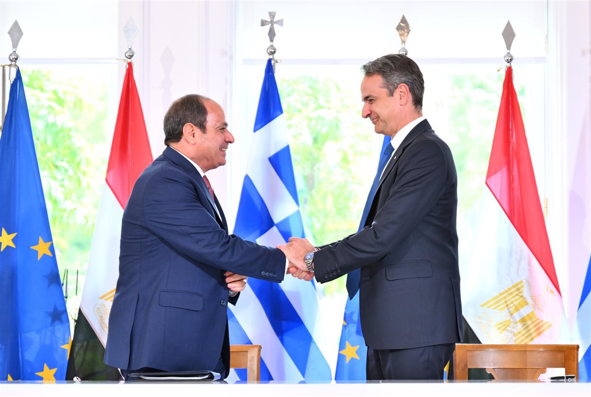 وفي أعقاب المباحثات، وقّع الرئيس ورئيس الوزراء اليوناني الإعلان المشترك بشأن الشراكة الإستراتيجية بين مصر واليونان، كما شهدا توقيع عدد من مذكرات التفاهم في مجالات عدة، تعكس عمق العلاقات الثنائية بين البلدين.