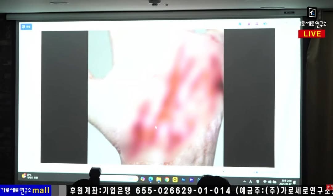 في هذه الحالة، عُرض مؤخرًا على مُبلّغ عن المخالفات كان يساعد العائلة، عرضٌ لشراء أدلة حاسمة بحوزتهم مقابل مليارات وون (ملايين الدولارات). وعندما رفض المُبلّغ، تعرّضوا لتهديدات خطيرة على سلامتهم الشخصية. ونظرًا لهذه الظروف الطارئة، نرجو تفهمكم ونحن نعقد مؤتمرًا صحفيًا آخر.