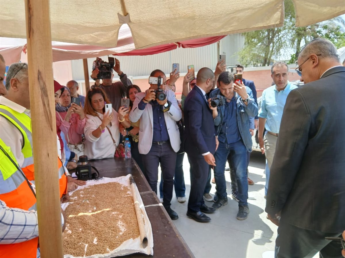و قد قام محافظ الإسكندرية والوفد المرافق له بتفقد الأقماح المحلية الواردة إلى الصومعة وإجراءات الوزن وأعمال لجنة الاستلام التي تتشكل من عضو من مديرية التموين رئيسا للجنة وعضو من مديرية الزراعة وعضو من هيئة سلامة الغذاء وعضو من جمعية القبانية وعضو من الجهة المسوقة وتنتشر ٥ لجان لاستلام الأقماح على مستوى المحافظة.