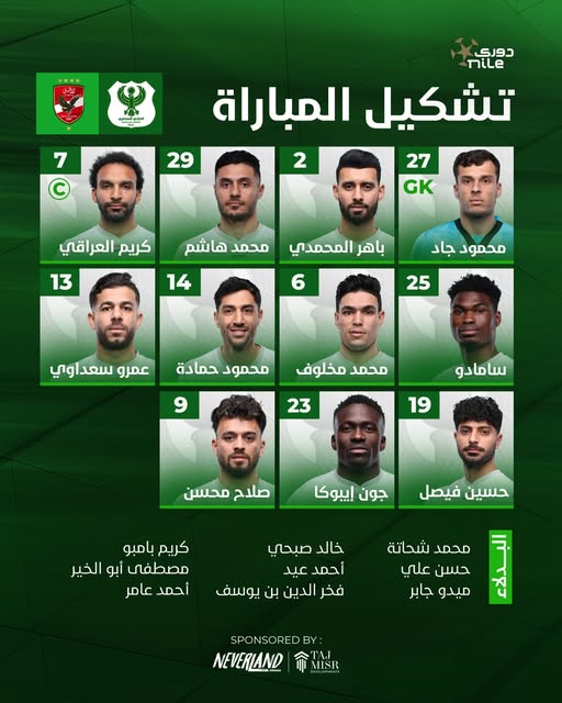 خط الوسط: مروان عطية وعمرو السولية وطاهر محمد وأشرف بن شرقي وإمام عاشور.