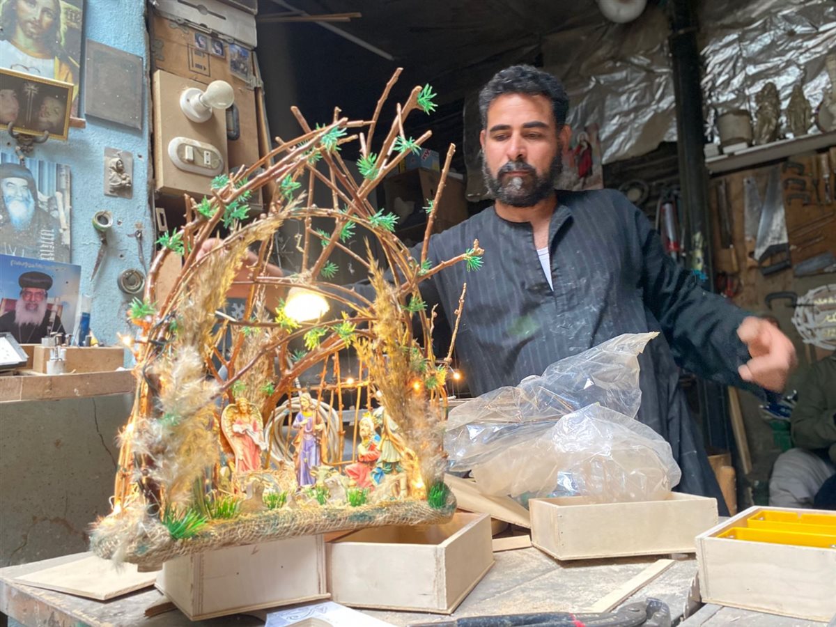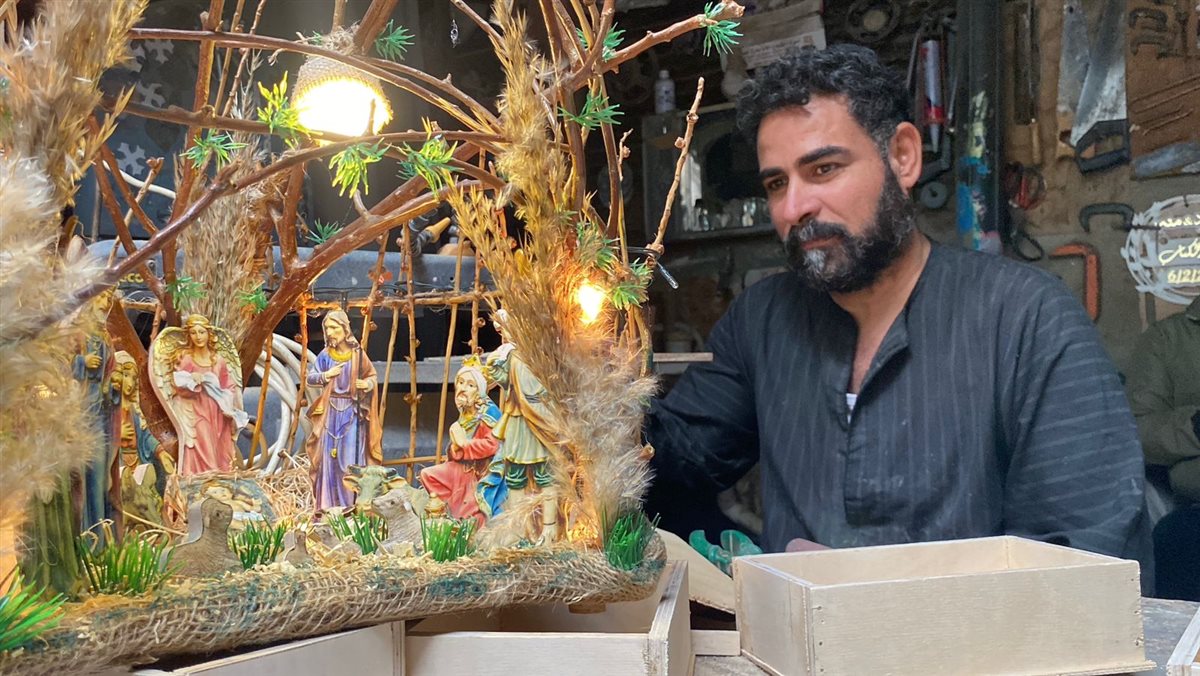 ويستثمر عاطف مهاراته في استخدام مواد متنوعة مثل الزجاج والخشب ونوى البلح، في صنع منحوتات فنية تعكس ذوقه الفريد وتنوع إبداعه.