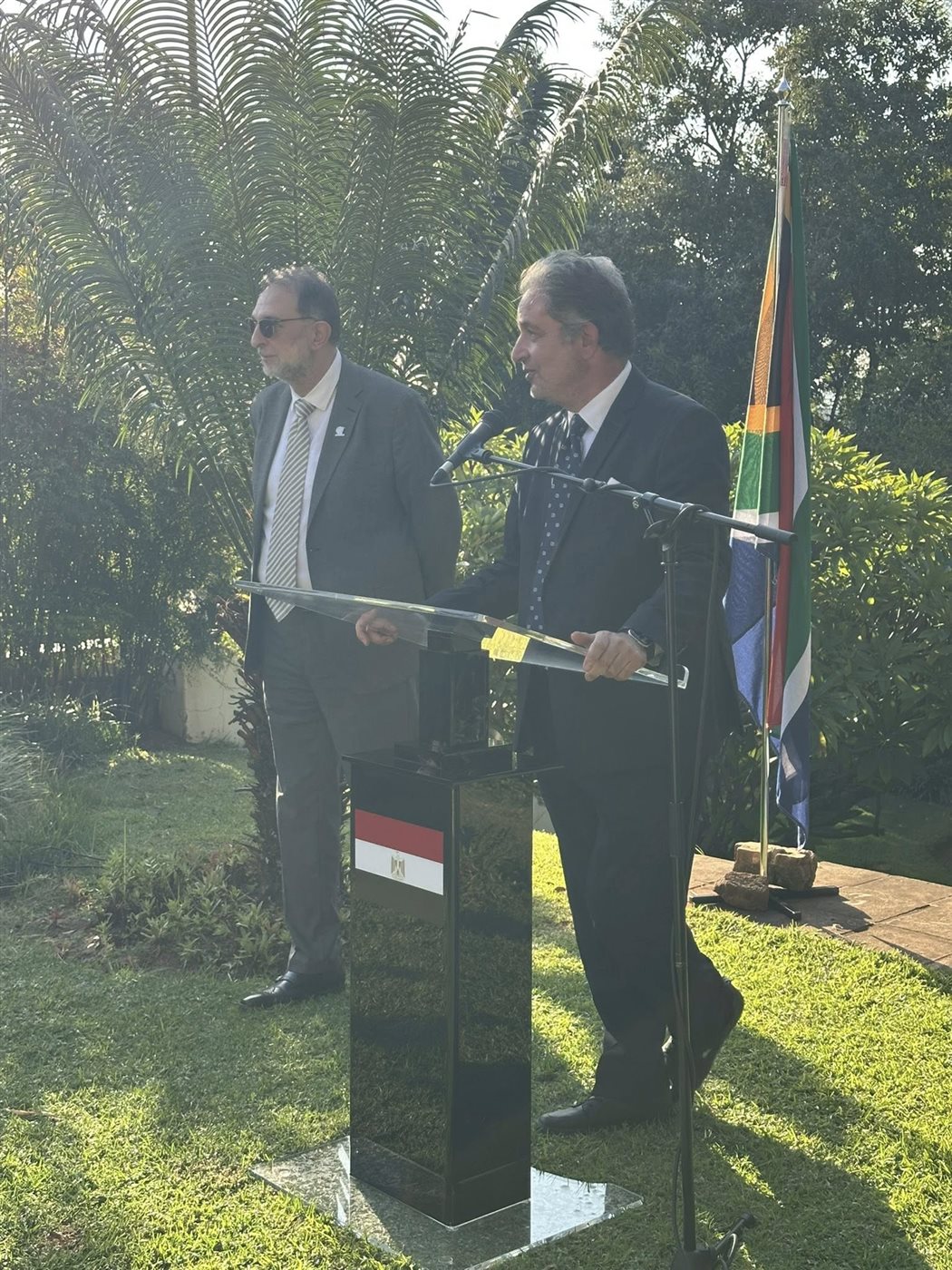 كما شارك في الحفل من الجانب الجنوب إفريقي عدد من المسئولين وممثلي الجهات الرسمية، من بينهم السيد توماس مادزيفي – الرئيس التنفيذي للعمليات بالهيئة الوطنية للمواصفات الإلزامية (NRCS)، ميسي كاتز – المدير العام لقطاع الأغذية بالـNRCS، راتشيسوسو – القائم بأعمال مفوض هيئة حماية المستهلك الجنوب إفريقية، ممثلون عن وزارة الصحة، ووزارة الزراعة، وهيئة الرقابة على المنتجات الغذائية، ومجالس التفتيش الفني.