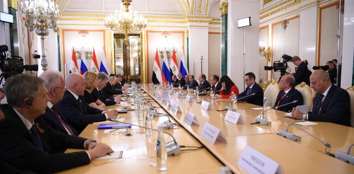 وصرح المتحدث الرسمي باسم رئاسة الجمهورية بأن الرئيسين عقدا جلسة مباحثات موسعة بحضور وفدي البلدين، استهلها الرئيس بوتين بالاعراب عن تقديره لمشاركة الرئيس في الاحتفال هذا العام، مما يعكس العلاقات الراسخة والتاريخية التي تربط بين البلدين والشعبين الصديقين.