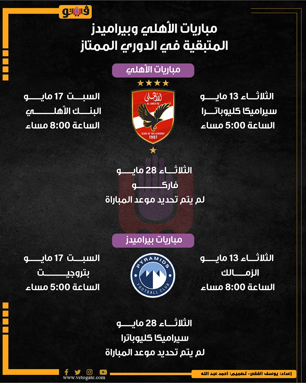 مباريات الأهلي وبيراميدز المتبقية في الدوري الممتاز (إنفوجراف)